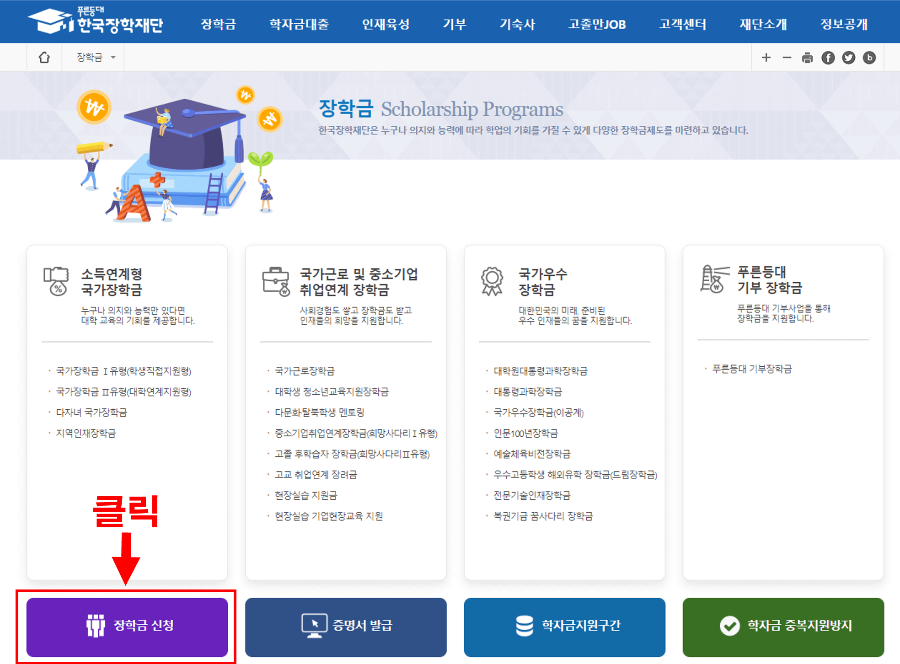 국가 장학금 종류 및 신청 기간