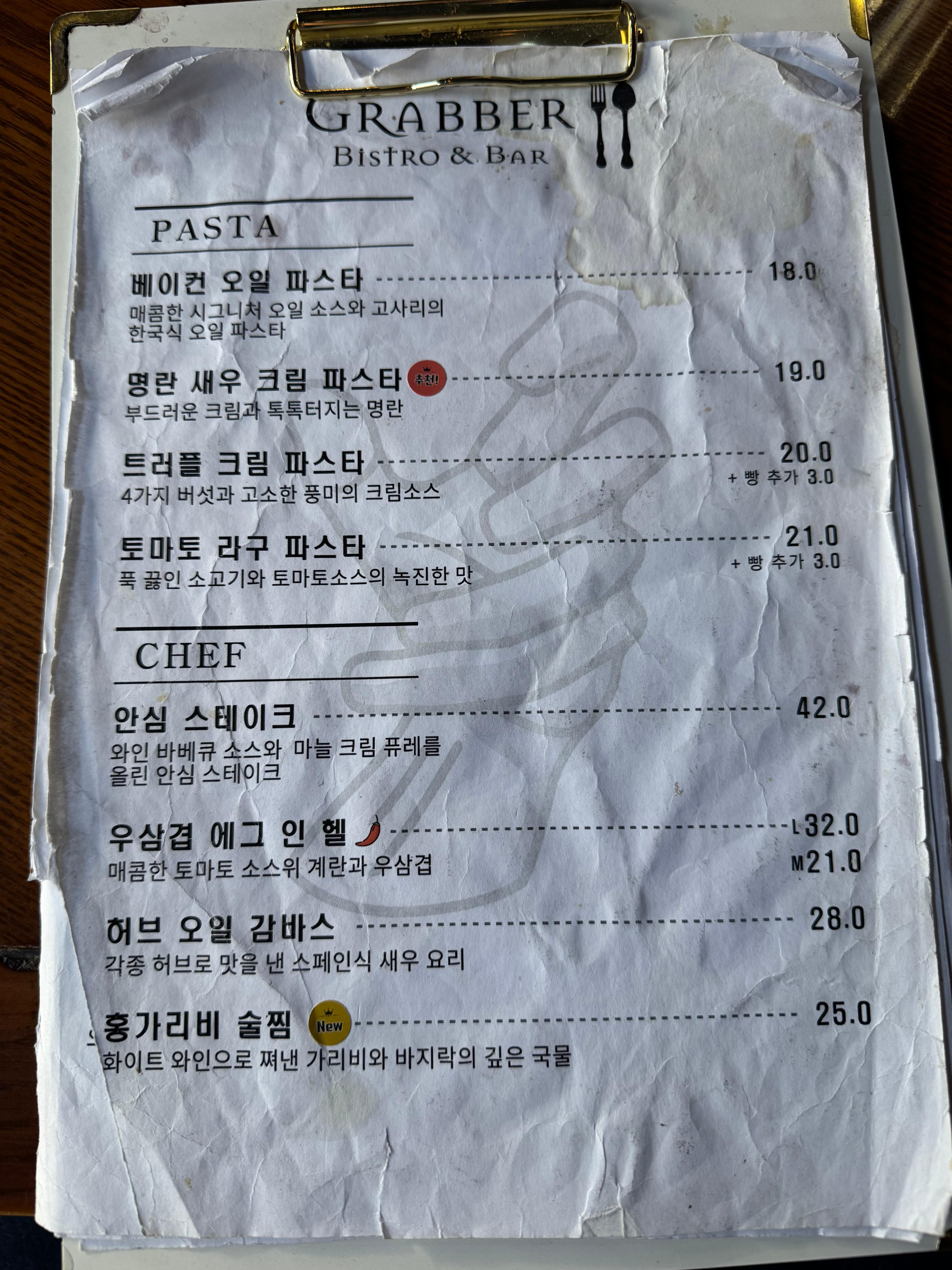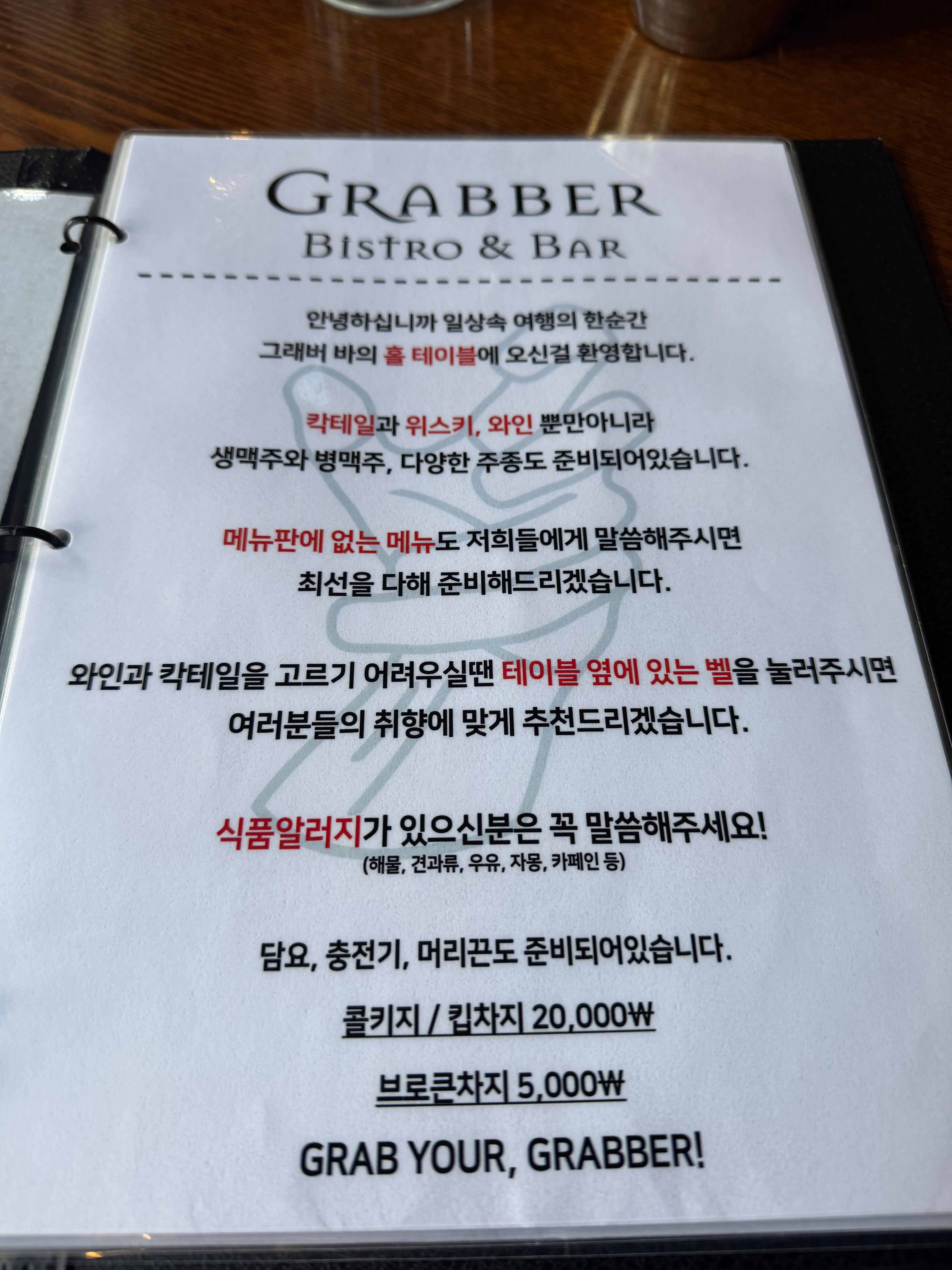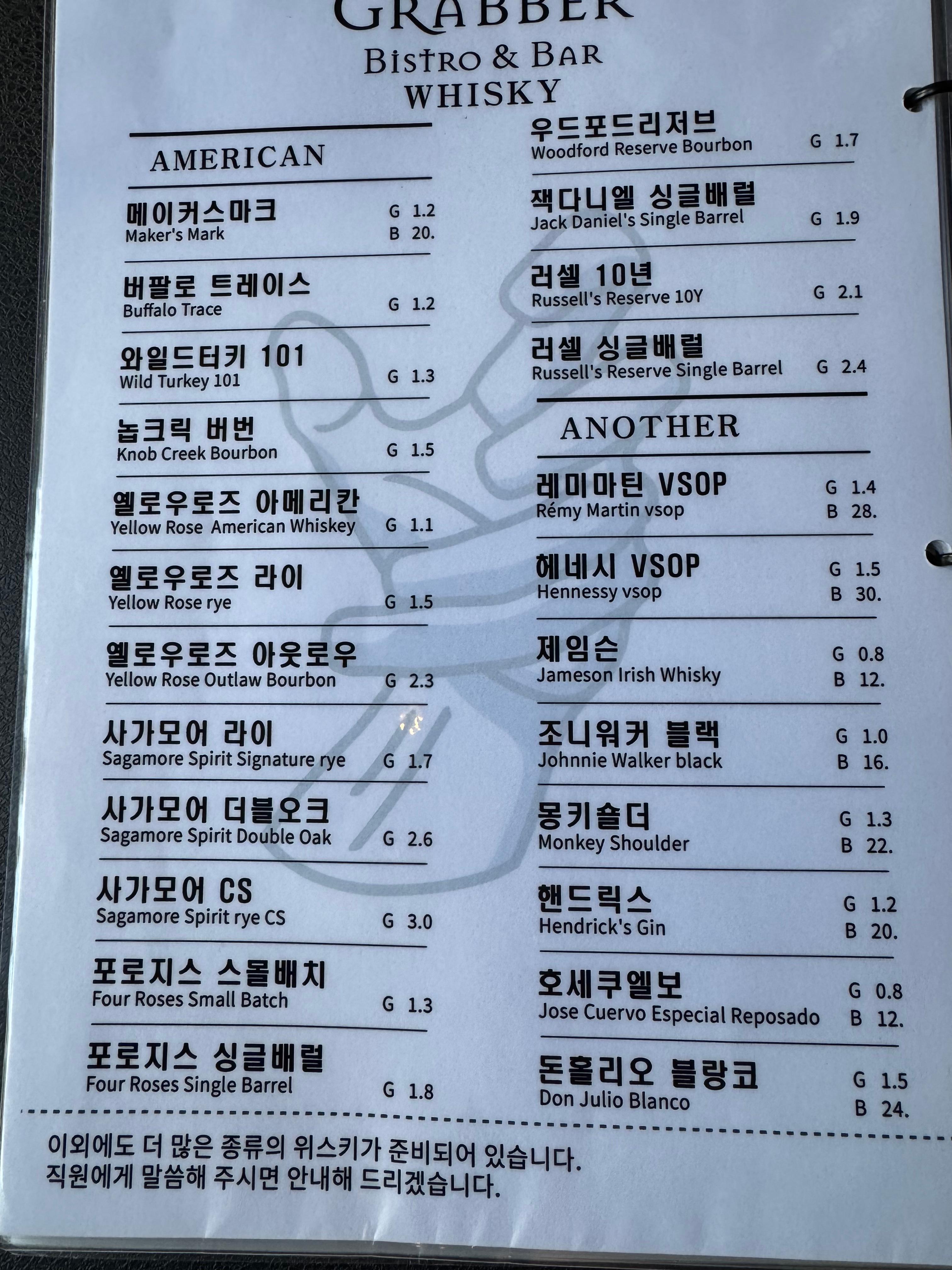 그래버 바의 정식 이름은 그래버 비스트로 and 바 (Grabber bistro&Bar) 입니다.