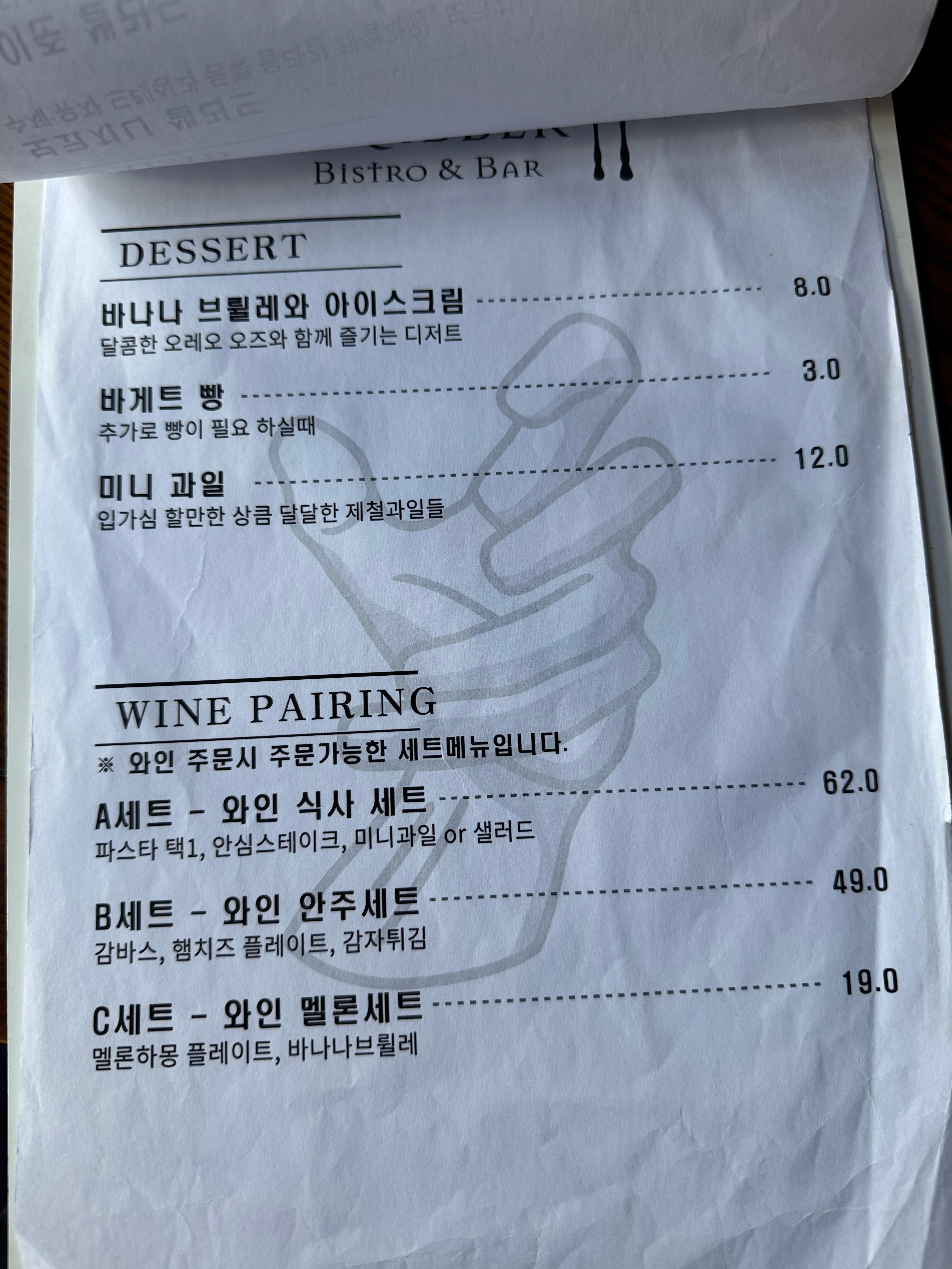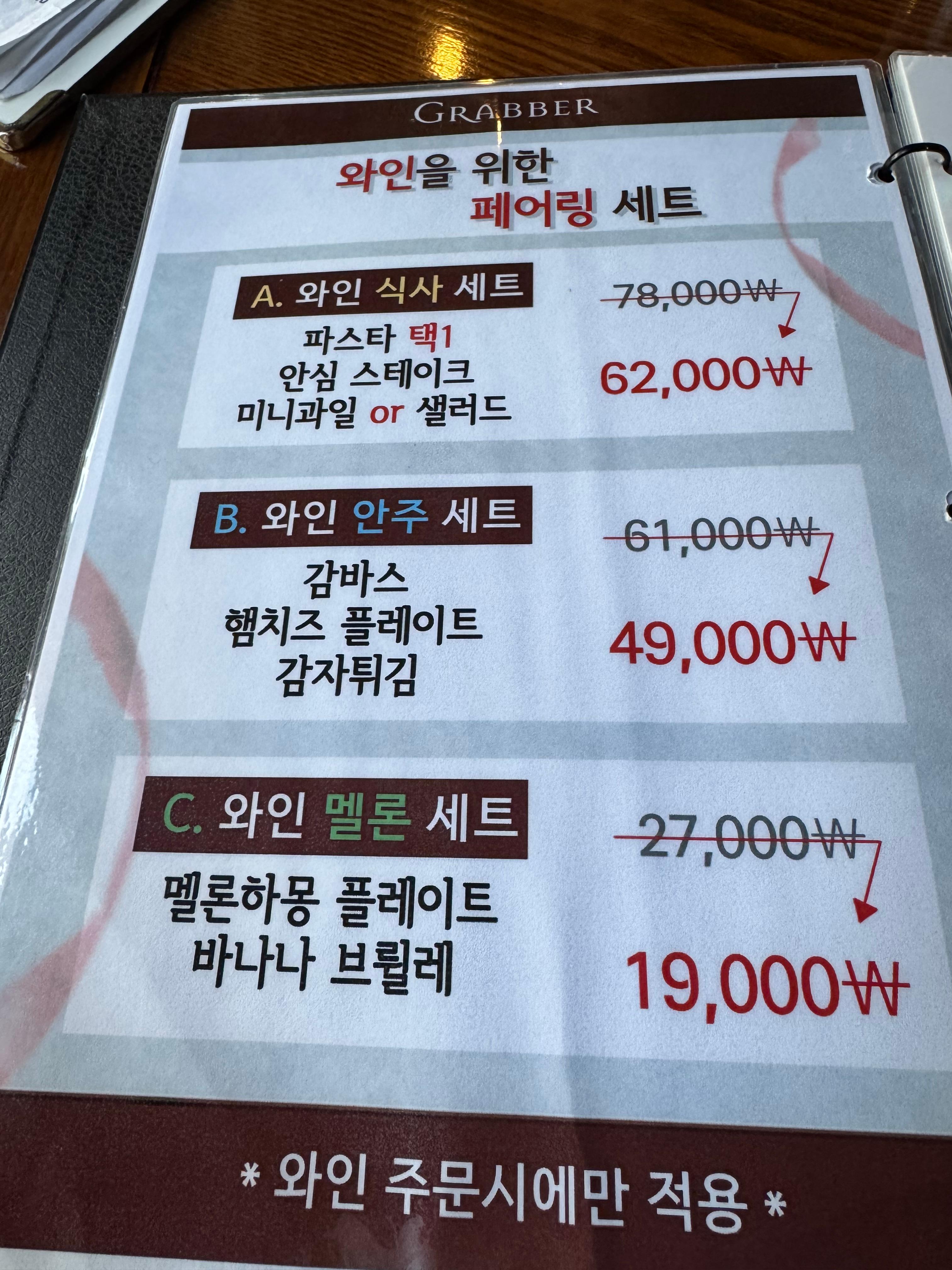 그리고 와인 주문 시에만 할인된 가격으로 파는 세트 메뉴가 있는데요~