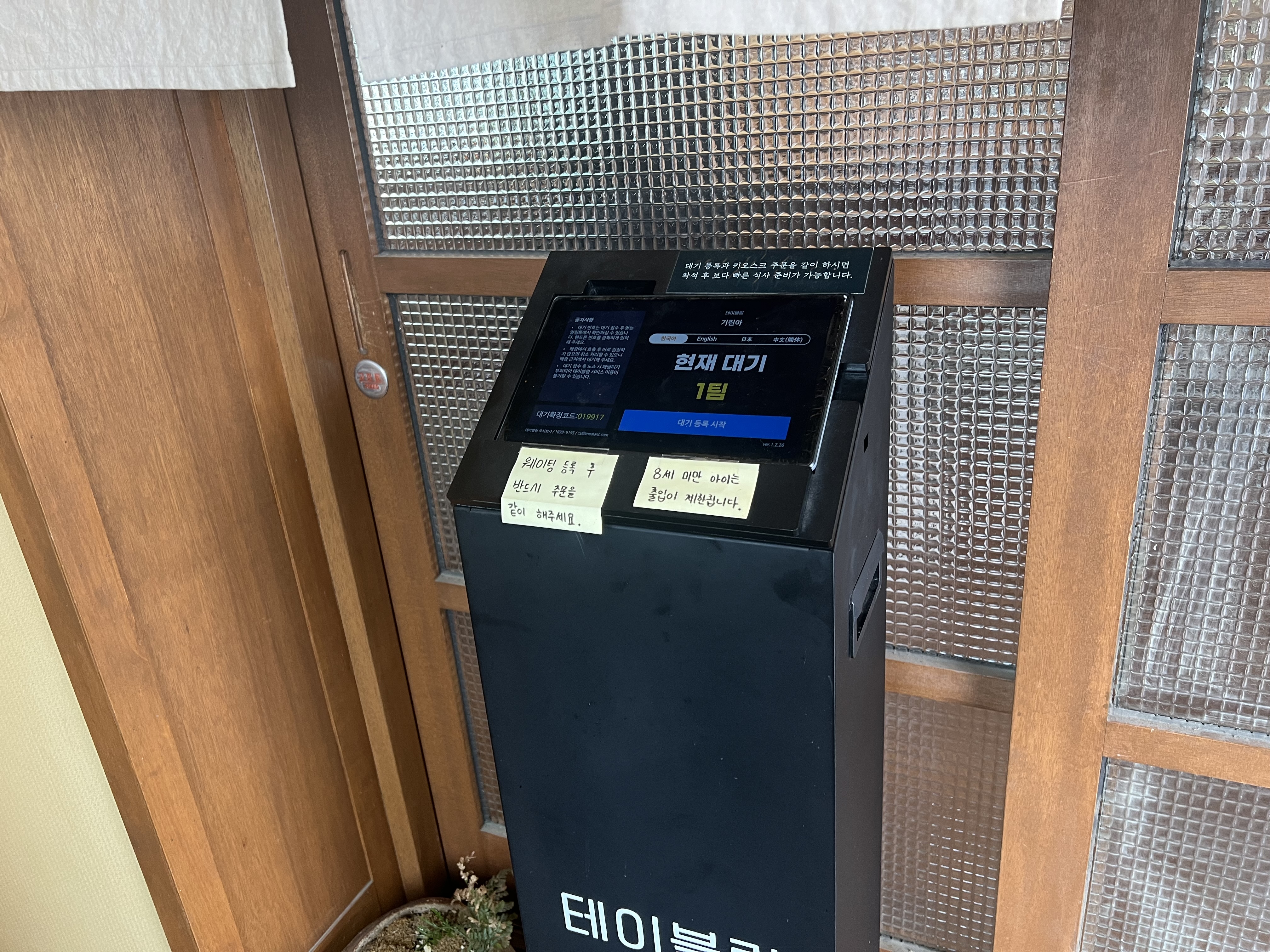 입구에 들어가시면 테이블링 예약 테블릿과 키오스크가 보이는데