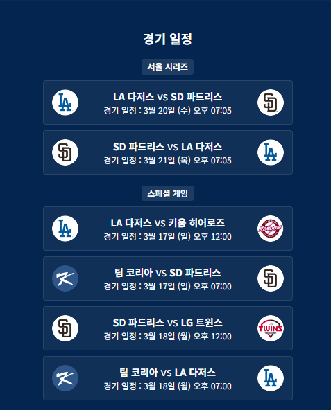 1번째 경기 - 3월 17일 (일) 오후 12시 00분 (LA 다저스 VS 키움 히어로즈)