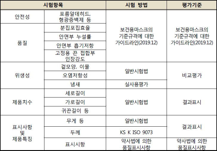 마스크 시험 평가 항목
