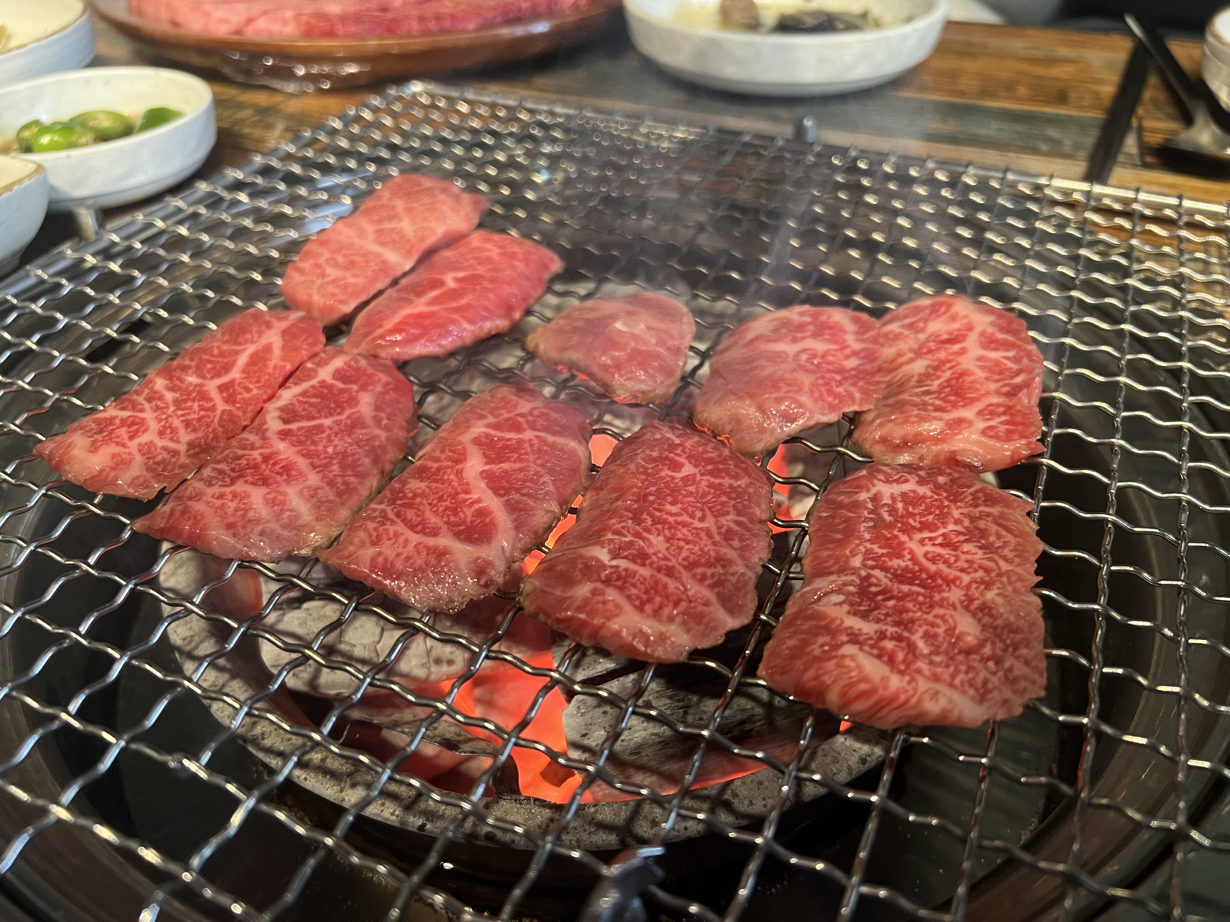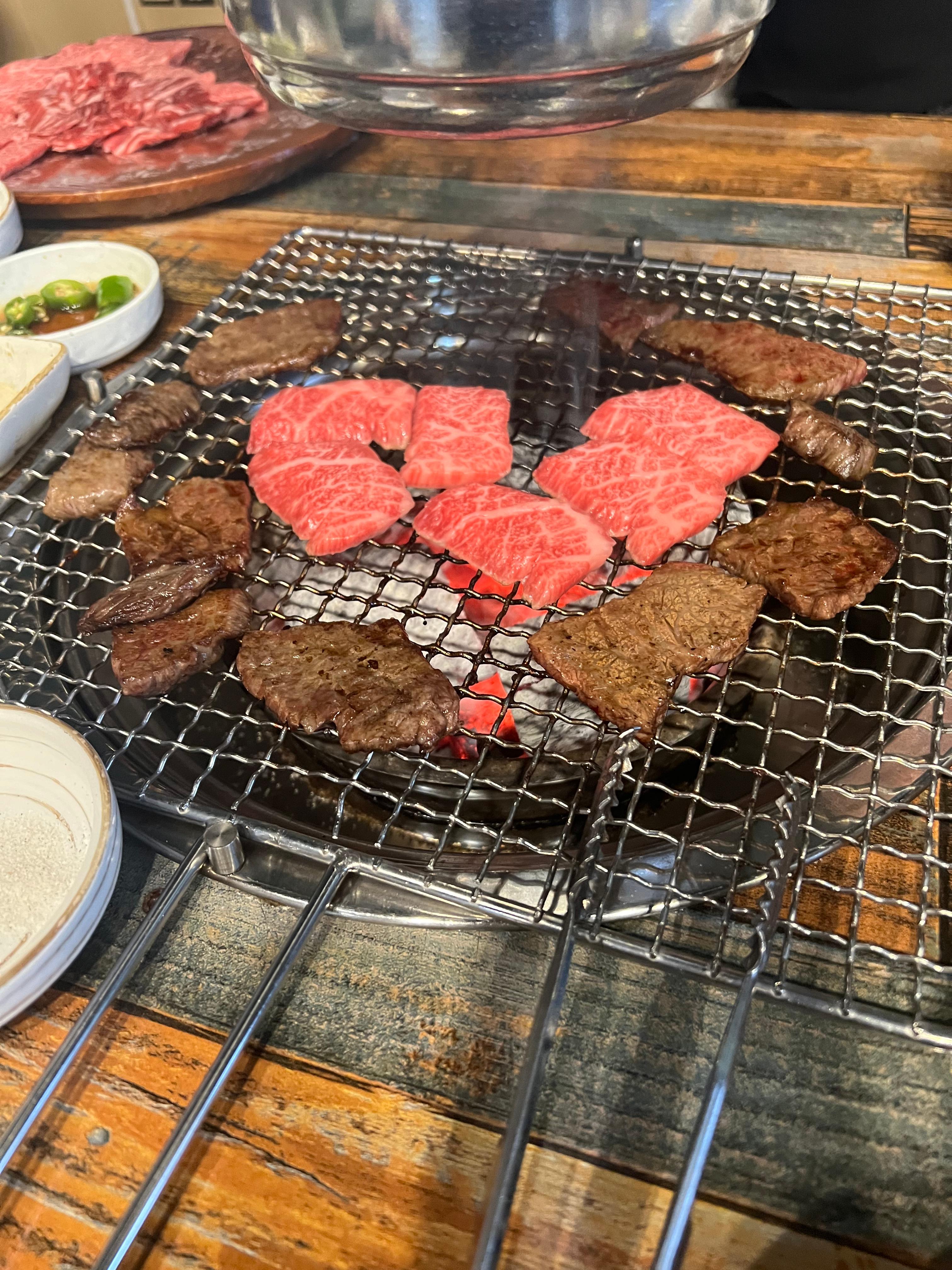 일단 소고기가 훌륭합니다. 숯불 위에서 구워 먹는 방식인데 고기의 지방질로 인해 아주 고소하면서도 맛있었어요~