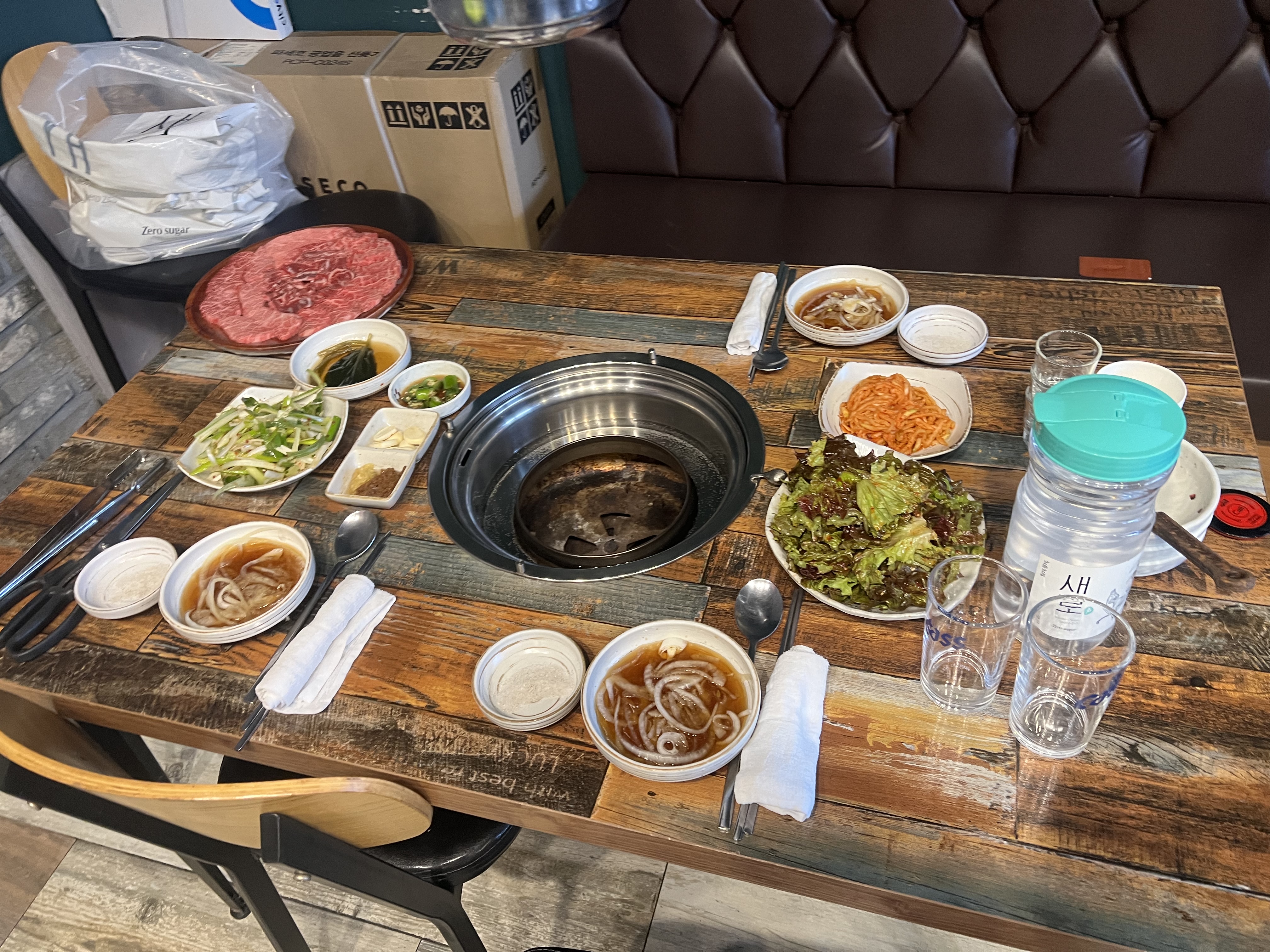 저희는 한우 안창+살치+꽃살 모둠 세트를 시켰는데요~