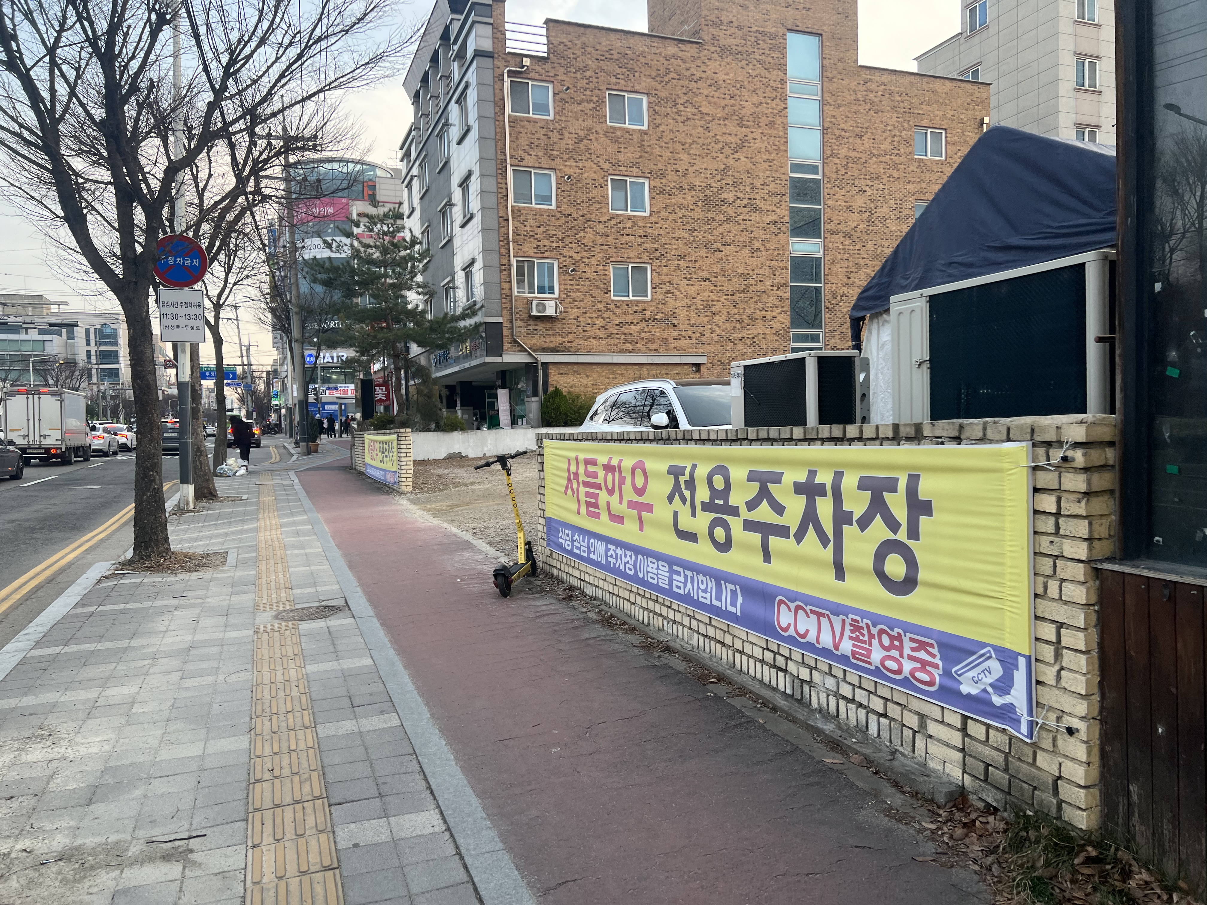 서들한우는 전용 주차장이 있기 때문에 전용 주차장을 이용하시면 됩니다. 아주 널찍하여 많은 차량이 주차 가능하지만, 만약 전용주차장에 자리가 없다면 길 건너 두정도서관 주차장을 이용하시는 것도 한 방법입니다.