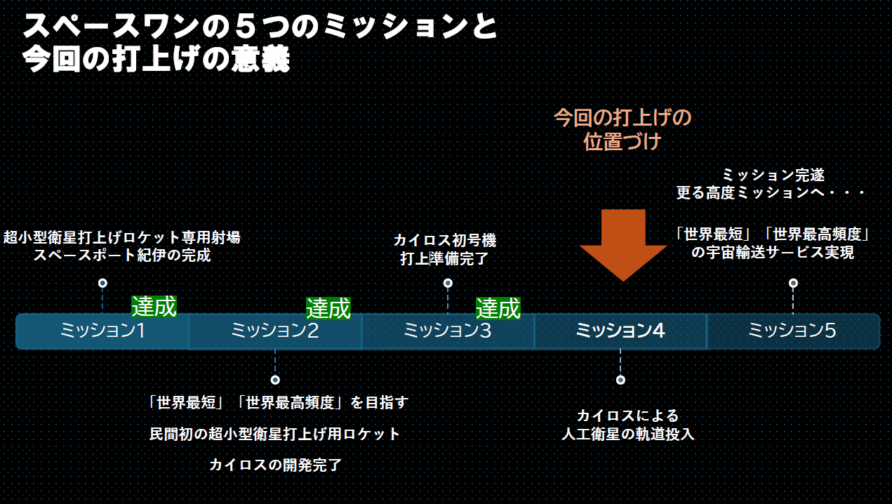 이번 로켓 발사의 의의는 스페이스원이 구상한 5단계의 미션 중 4단계에 해당하는 미션으로 카이로스 로켓을 이용하여 인공위성의 궤도 투입을 시험하는 미션이었습니다.