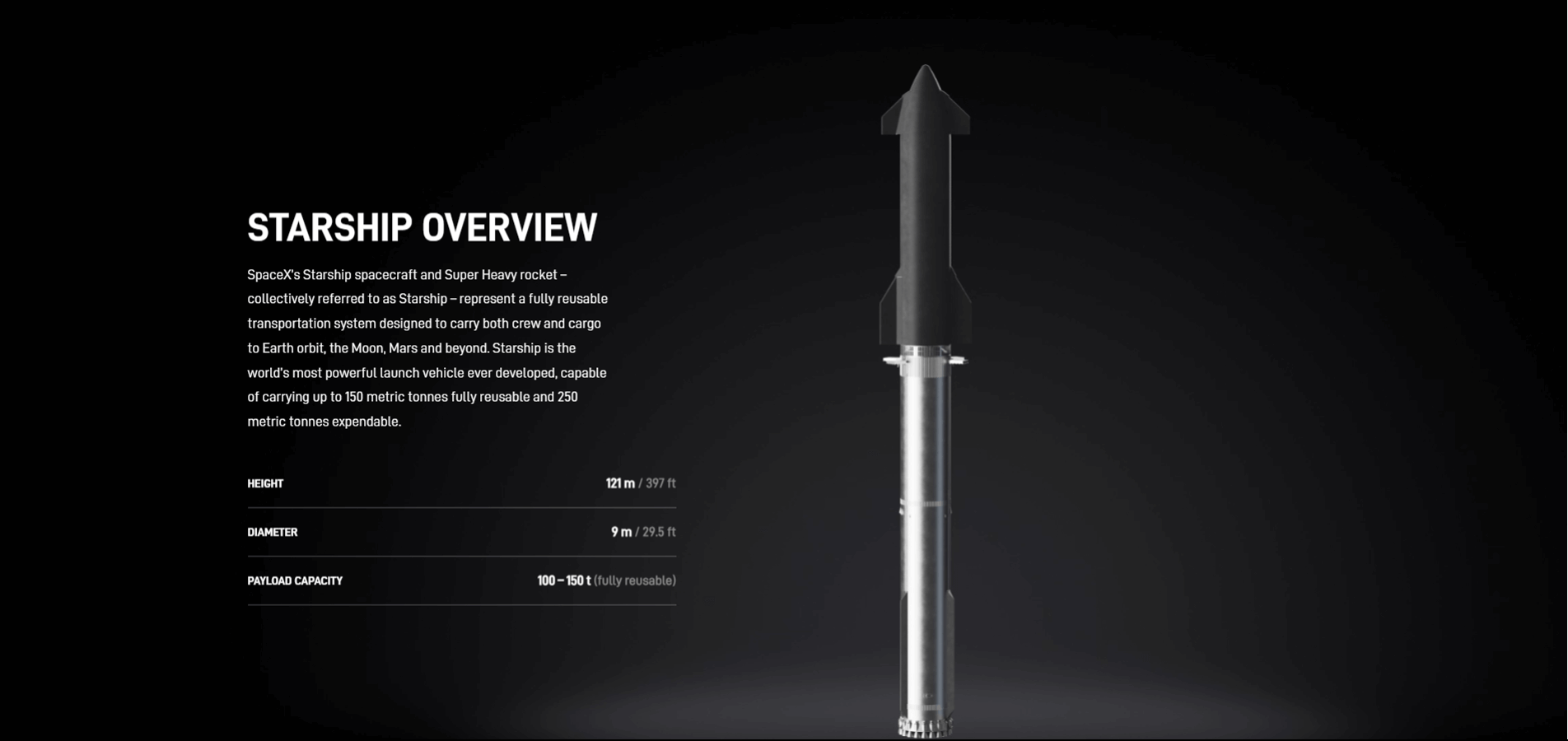 스페이스X에서 개발 중인 다목적 초대형 우주발사체인 스타십은 재사용 로켓을 이용하여 우주 수송 산업의 새로운 경제적 접근을 구축 및 확립하고, 달과 화성의 탐사를 위해서 그리고 더 나아가 멀리 위치한 천체들에 대한 탐사 계획까지 고려해 설계된 기체입니다.