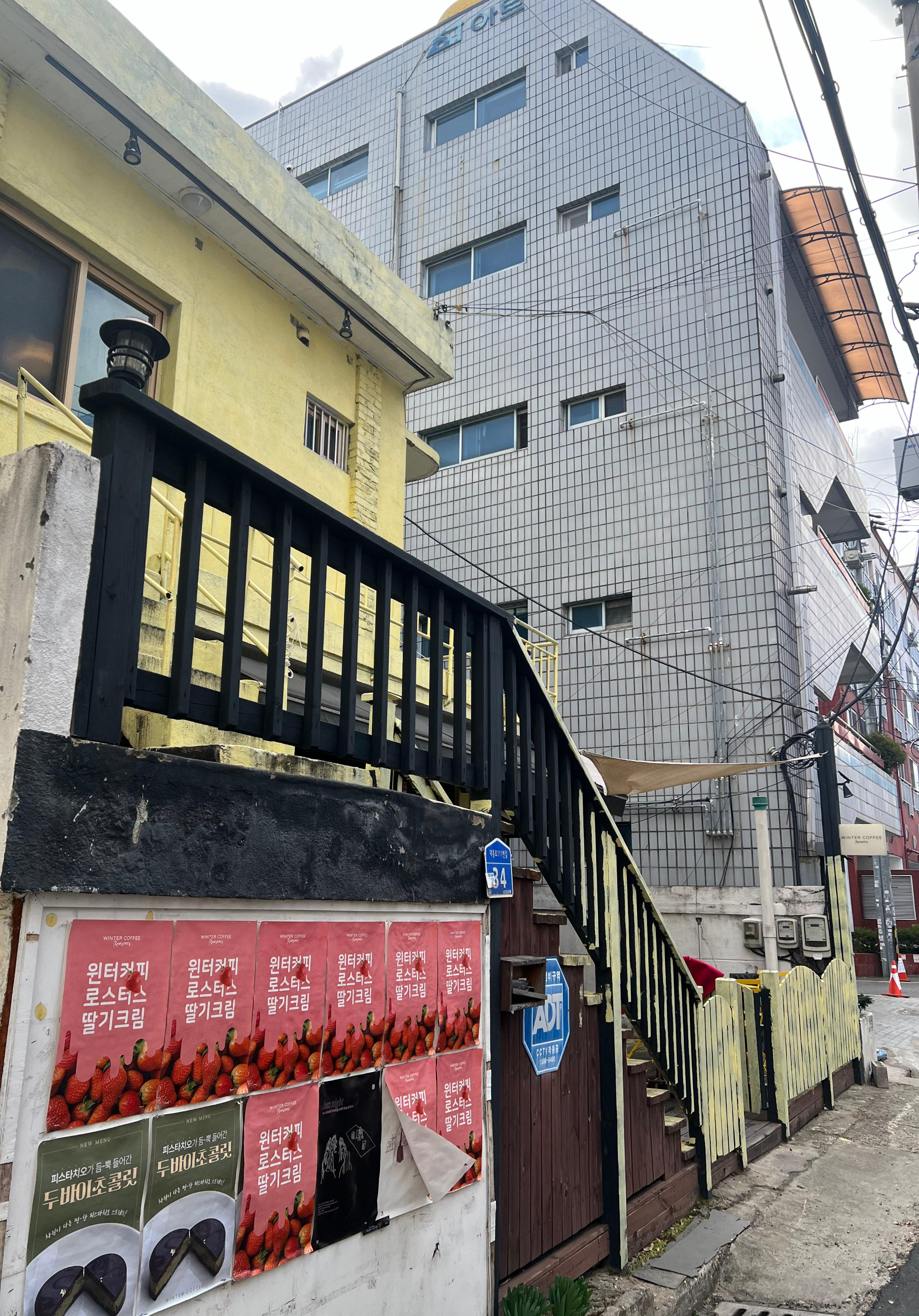 윈터커피 로스터스는 몽심을 오른쪽에 두고 골목 안쪽으로 쭉~들어오면 왼편에 보입니다. 처음에는 주택가 골목에다 외관이 허름해 보여서 여기가 맞나~? 싶은 곳인데요. 주택을 개조해 만든 가게가 한편으로는 운치 있어 보이기도 합니다.