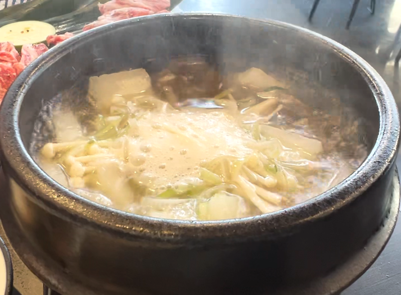 된장술밥의 경우 밥알이 같이 들어가 있는 된장찌개 같은 음식인데 일단 양이 엄청 많았습니다. 하나를 시켰는데 2인분이 나온 느낌입니다. 감칠맛도 풍부하고 양도 많으니 이정도면 일반적인 고깃집에서 파는 된장찌개에 공깃밥 추가보다 가성비가 좋아 보였습니다.