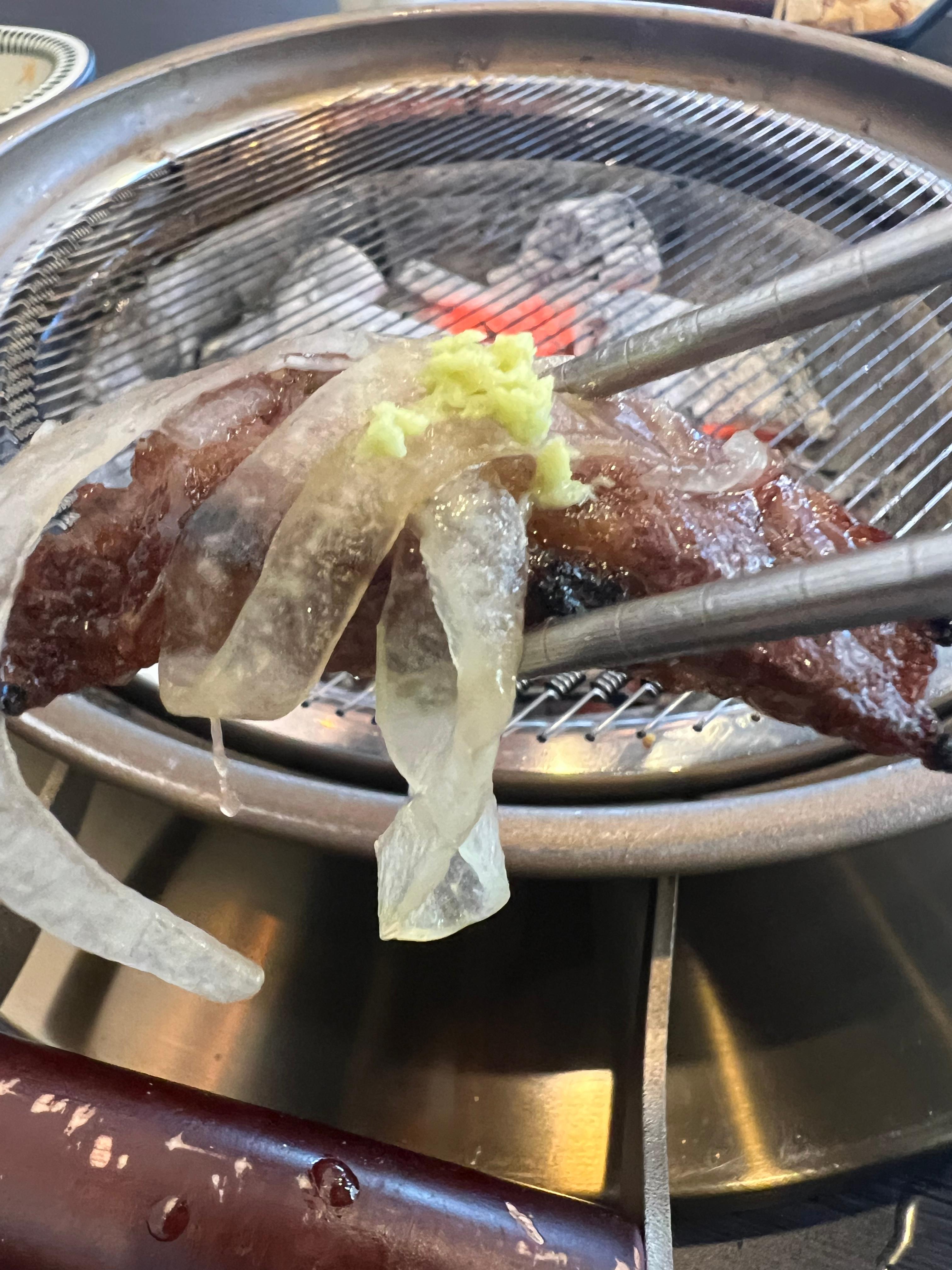요렇게 구운 고기를 양파와 조금의 와사비와 함께 먹으니 정말 맛있었습니다.