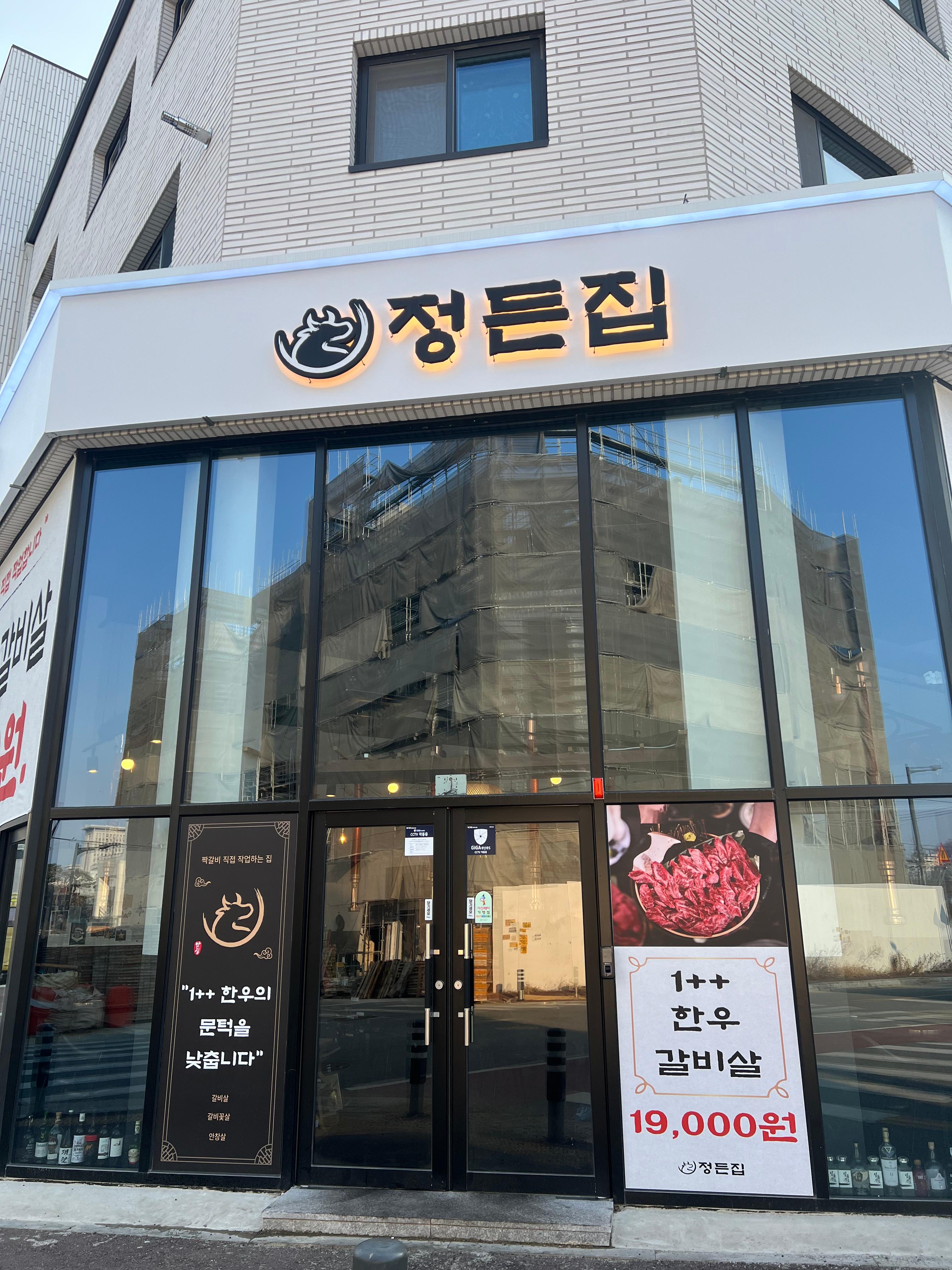 입구에는 1++ 등급의 한우 갈빗살을 취급한다고 대문짝만 하게 걸려있었습니다.