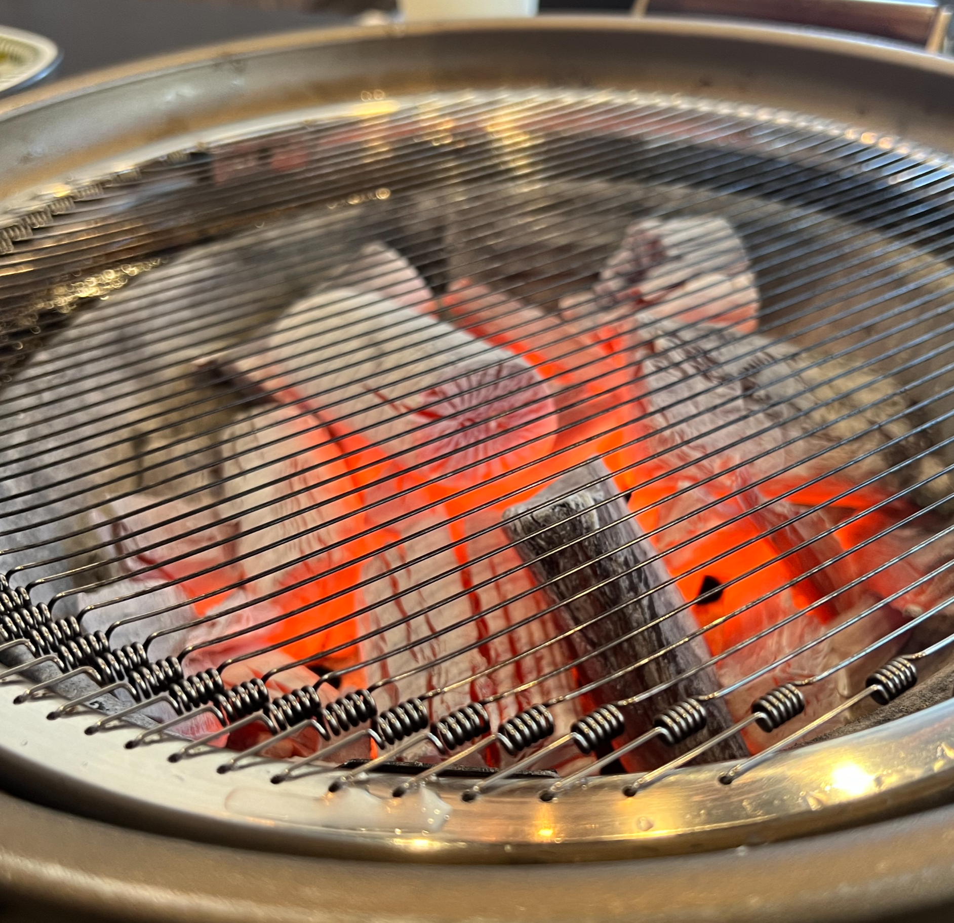 조금 더 기다리시면 숯불을 넣어주는데 화력이 좋았습니다. 하지만 고기를 구울 때는 조심하세요~