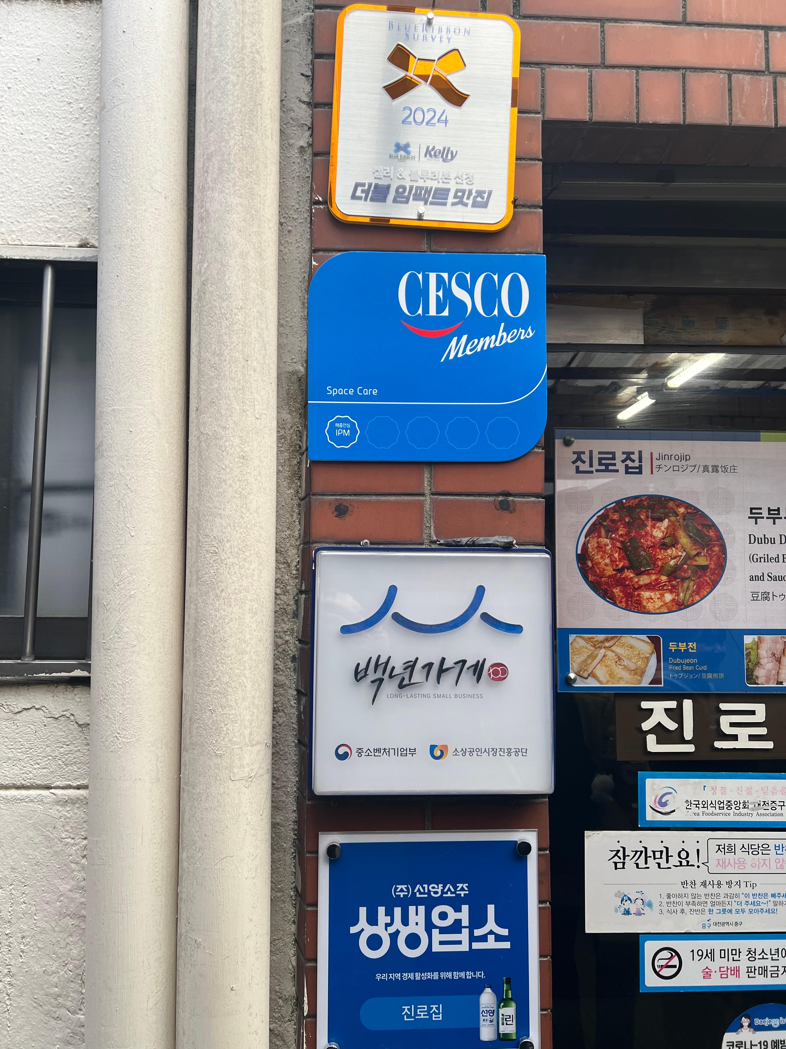 진로집 입구에는 블루리본과 백년가게 마크가 붙어있었는데요~ 이건 공식적으로 인증받은 맛집이라는 얘기겠죠? ㅎㅎ