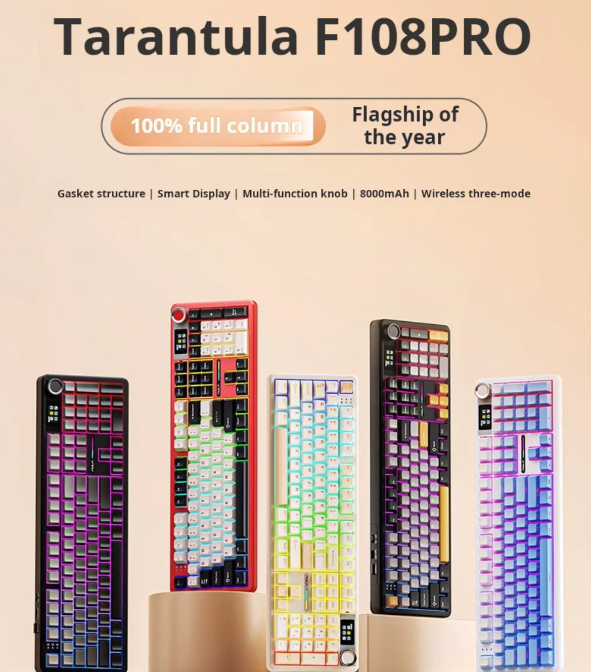 AULA F108 pro 무선 블루투스 키보드 매크로 게임용 키보드 가스켓 TFT 스마트 디스플레이가 장착된